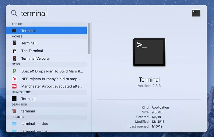 Starte Als Nächstes die Terminal-App über das Spotlight, indem du die Befehlstaste (⌘) + Leertaste gleichzeitig drückst und Terminal eingibst.
