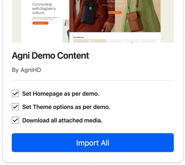 担心要从头开始构建?无需再为此烦恼。您可以使用简单的一键演示导入程序来启用预设页面。
