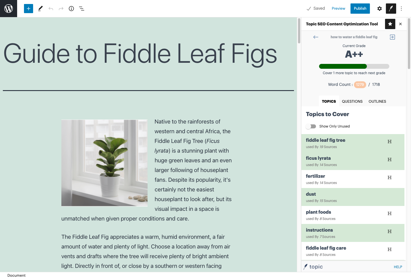 Avoid switching back and forth between tabs and copying and pasting your content from place to place. With the plugin, all the tools you need to optimize your content are right in the WordPress editor.