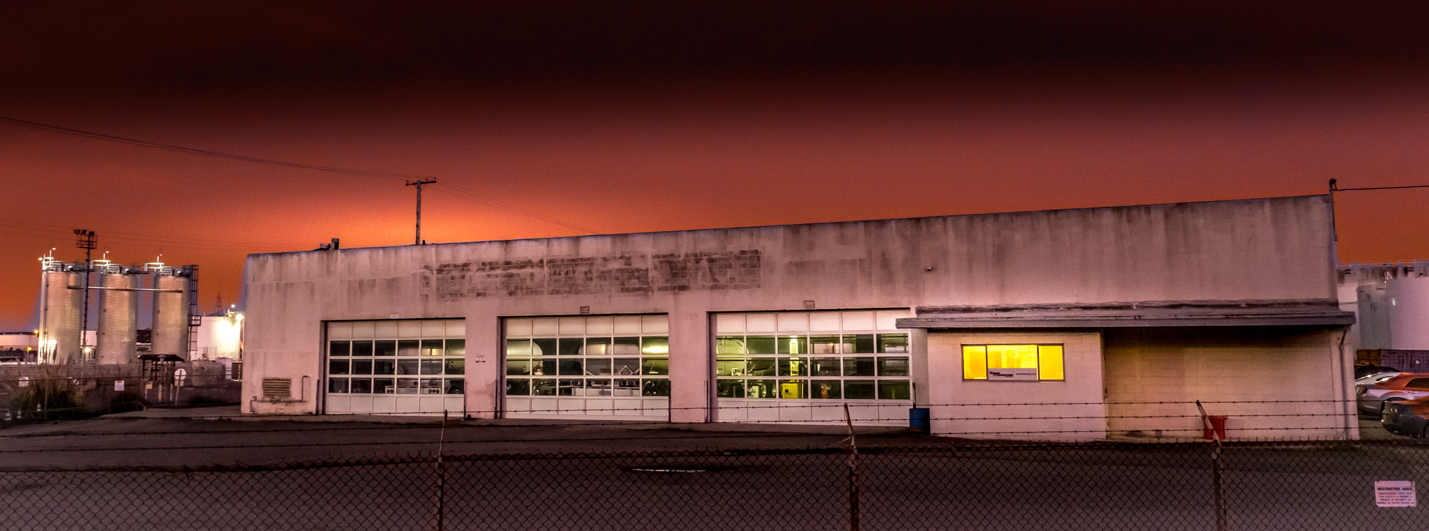 Today, General Warehouse is still standing proud, though its sign has crumbled and there’s no getting inside (though one photographer did a few years ago). Anyway, a few shots from the yards one night last week. Amazing place.